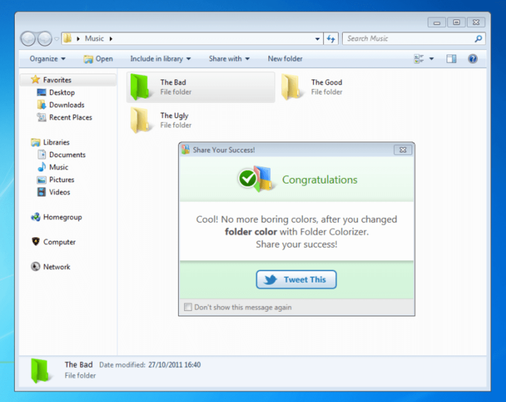 Bring a little color to your desktop with Folder Colorizer, a simple app that allows you to assign any color to your folders.