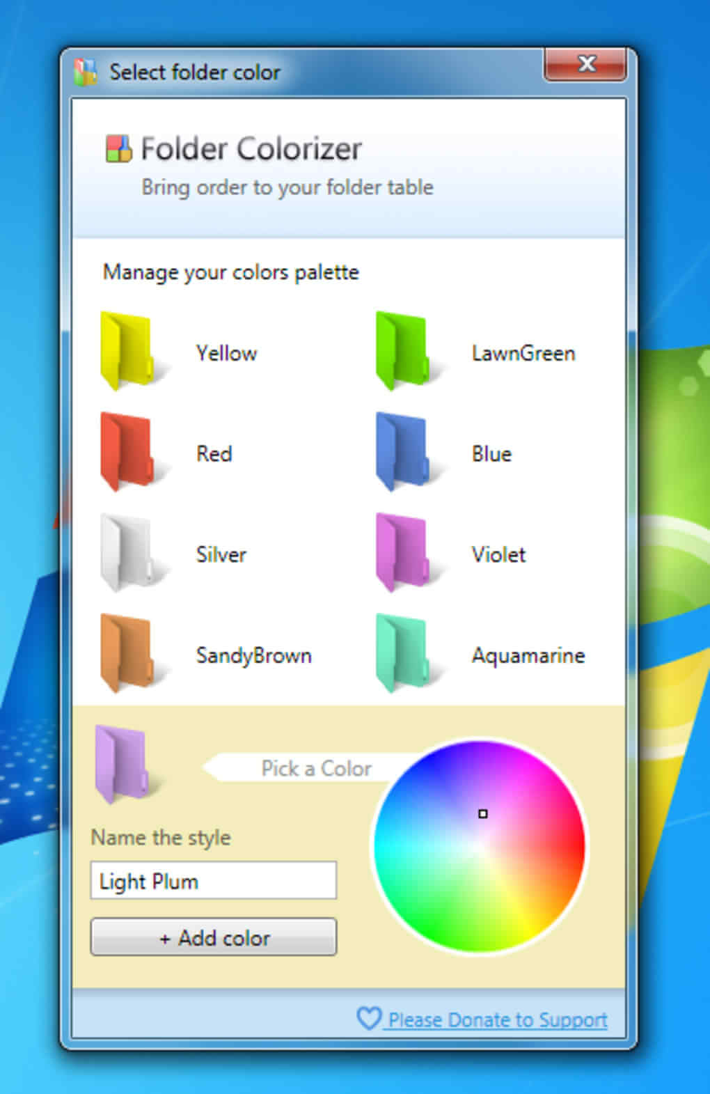 To add a new color, pick one from the color wheel and hit +Add color. It goes without saying that Folder Colorizer also has an option to restore your folder’s original yellow.